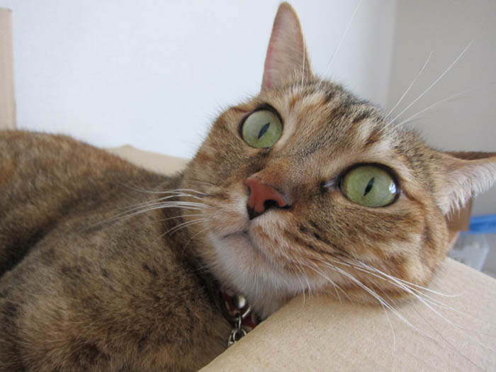 の横に合流していました。猫タワー【元・丸】に乗せている段ボール箱に