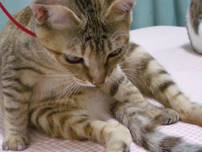 丁寧にお腹を毛づくろい。