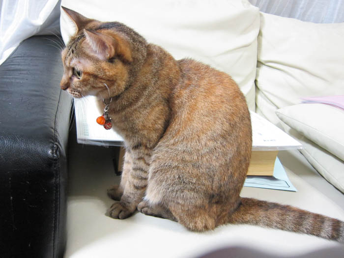 2010年 10/23(土) 798日目のぴっち♀とぽっけ♂ ~クロネコ車で日向ぼっこ~ぴっち♀が見つめる先にあるのはクロネコ車。入りたそうにしているけれど、入れない訳は……。