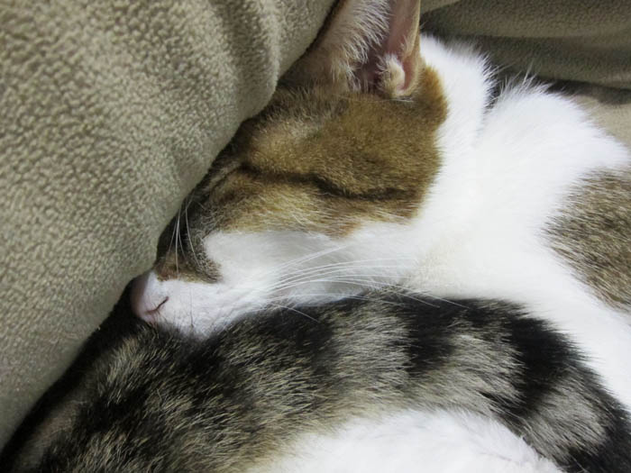 に押し付けてぽっけ♂がお昼寝に励んでいます。