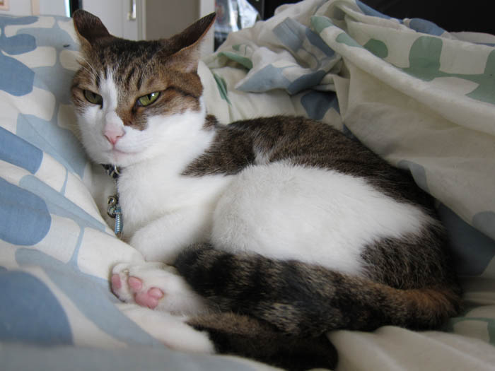 羽毛布団に囲まれて気持ち良さそうにしていたので、