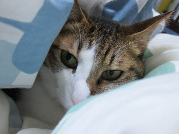 布団の隙間からこちらをチラリ。