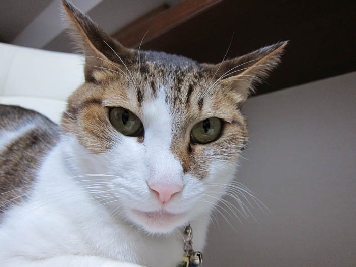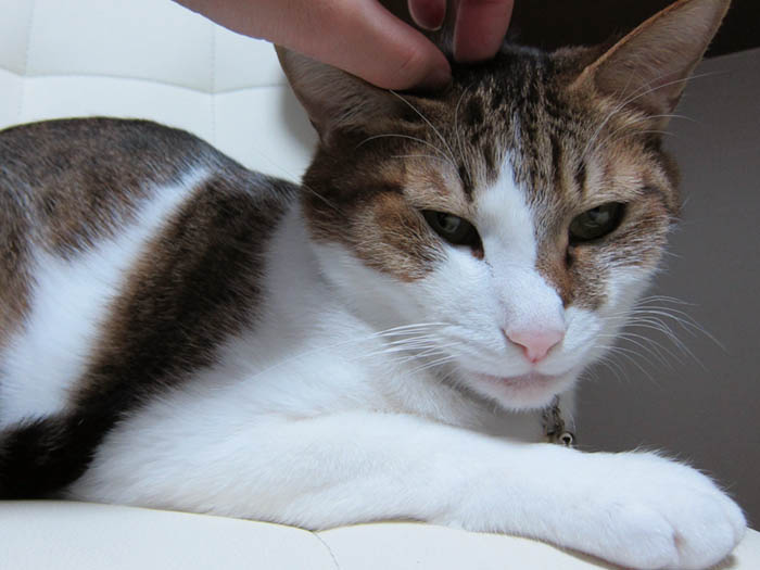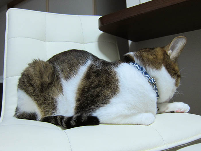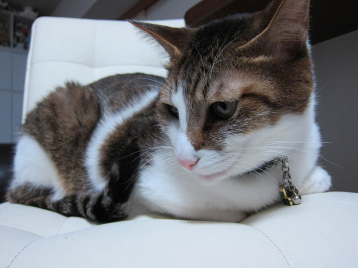 2010年 12/21(火) 857日目のぴっち♀とぽっけ♂ ~人間用枕を使う猫~ダヤンの枕で寝るぽっけ♂。しかも、正しく使っているのです……。