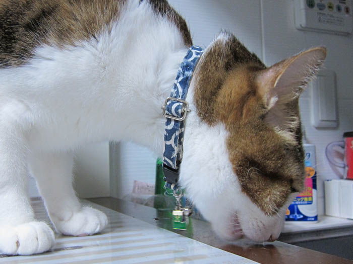 のままカウンターへ上がったので、カウンターが塗れてしまったのでした。