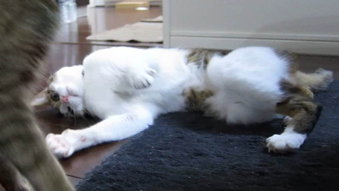 2011年 1/27(木) 894日目のぴっち♀とぽっけ♂(2)動画 ~猫毛玉に焦がれて~ぴっち♀が地毛で作った猫毛玉ボールに大興奮。ちょうだい、ちょうだいと可愛い声で鳴きまくり。
