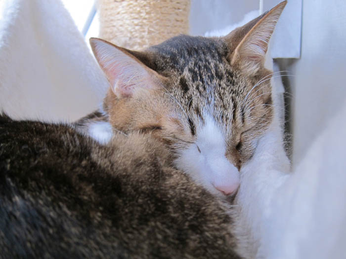 2012年 2/14(火) 1277日目のぴっち♀とぽっけ♂ ~猫の黒目~ぽっけ♂の黒目がパッチリ。バレンタインということで、2匹にはとあるプレゼントを。