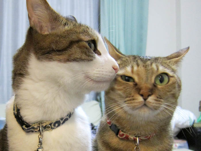2012年 5/19(土) 1372日目のぴっち♀とぽっけ♂ ~夜食の後に~夜寝る前のゴハンを食べた後の2匹。ぽっけ♂が凛々しかったり、ちょっぴりホラーだったり。