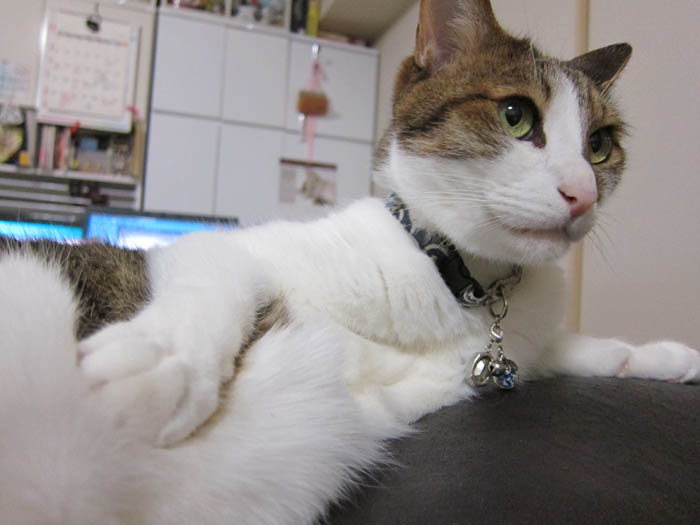 ぽっけ♂がお腹の毛づくろいに夢中です。