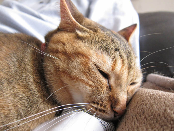 新規写真追加。私の苦労など気にも止めず悠々なぽっけ♂。遊びに来た両親にも相変わらず。