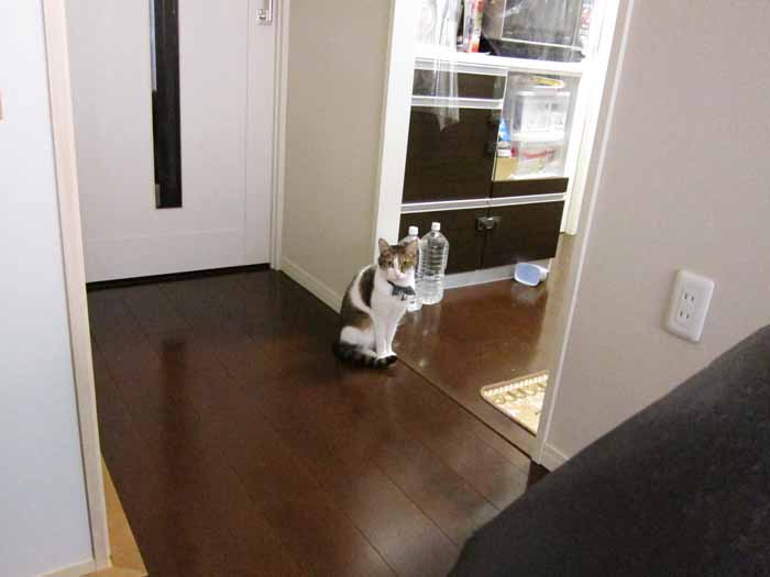 一方のぽっけ♂は、キッチンの入り口で