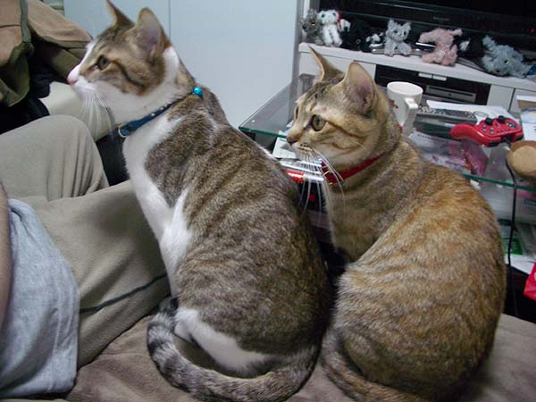 が1泊2日で福岡へ出発の日。飛行機の時間の関係で夜明け前に起床すると、気配に気づいた2匹が元気に早朝ごはんコール