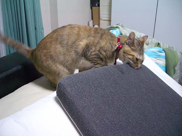 」獲物認定されてしまった低反発クッション。