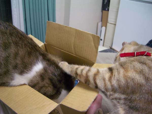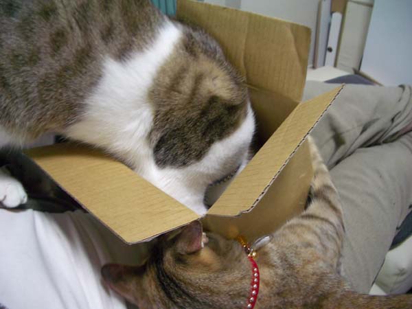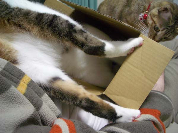 箱の外側からちょっかいを出しています。