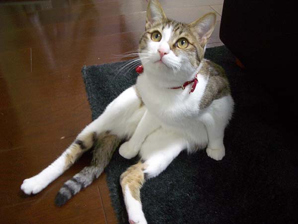 そんな訳で、急きょまだ長さに余裕のある「ぴっち♀首輪(赤)」をぽっけ♂に、