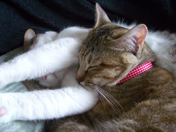 そんなぽっけ♂の胸枕でお昼寝中。