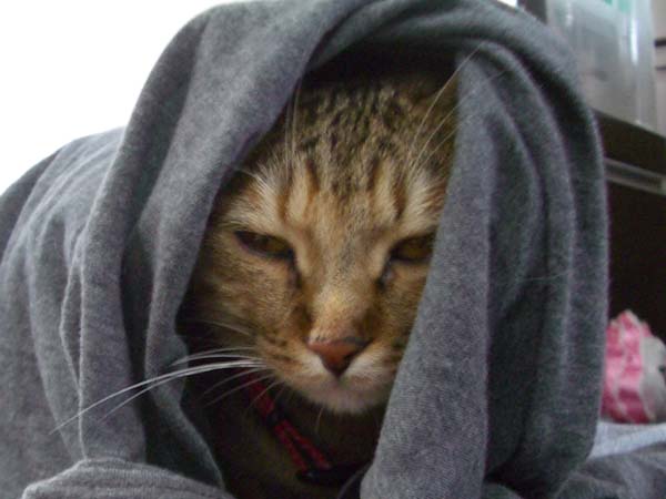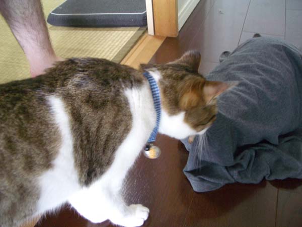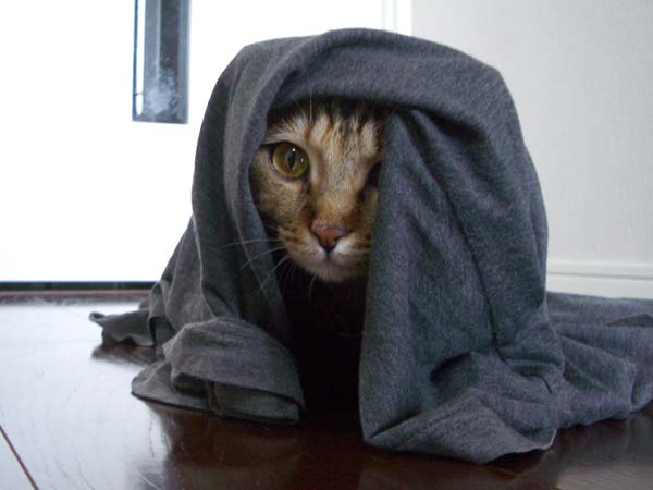 が面白がってTシャツをかけたら、それが気に入ったのか、そのままじっとしています。