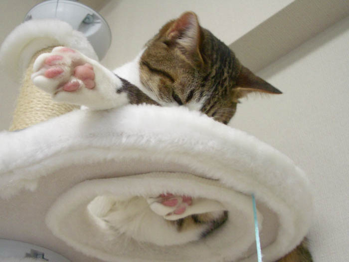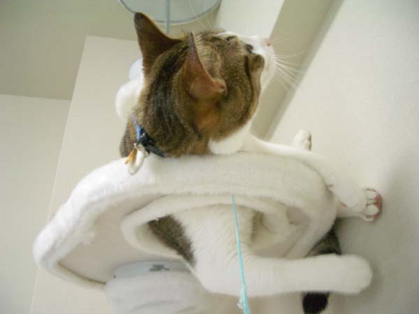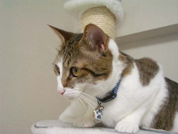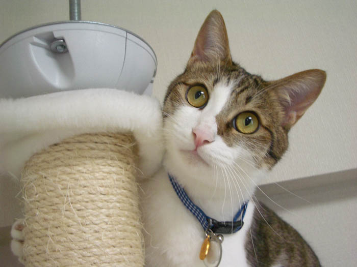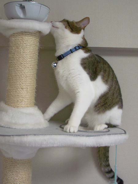 キャットタワー最上段で張り切り中のぽっけ♂。