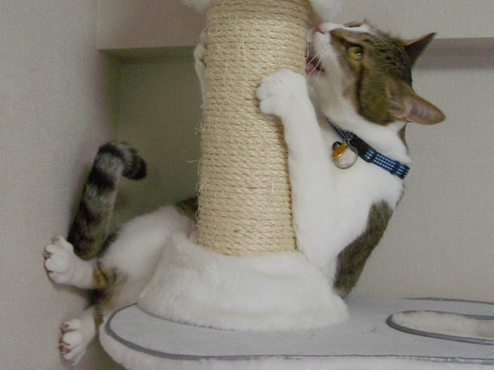 柱に齧りついたり、爪を立てまくってみたりと