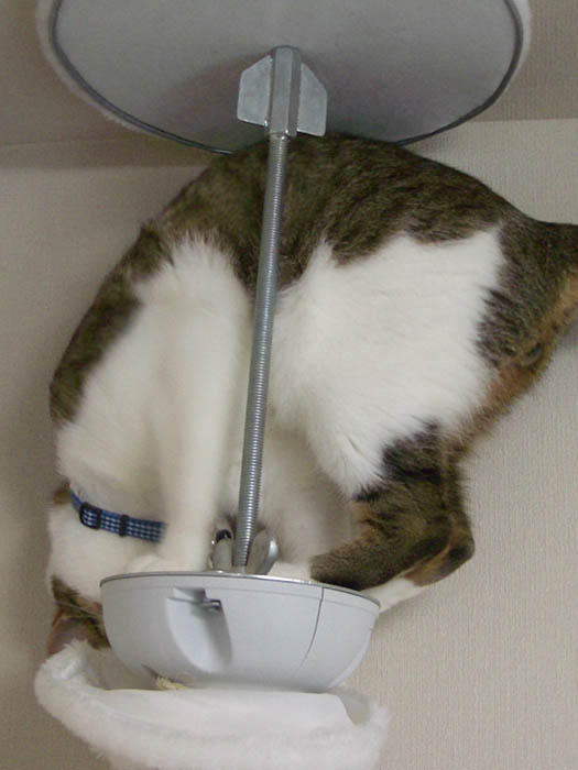 今度は天井のつっぱり用螺子にも齧りつきます。