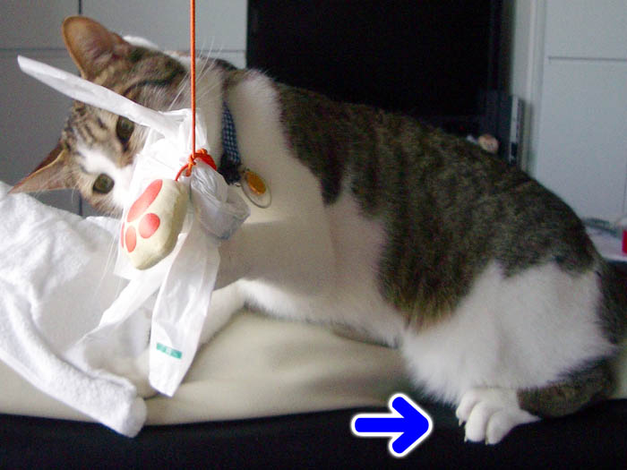 ちょいと持ち上げて獲物を狙う右前足