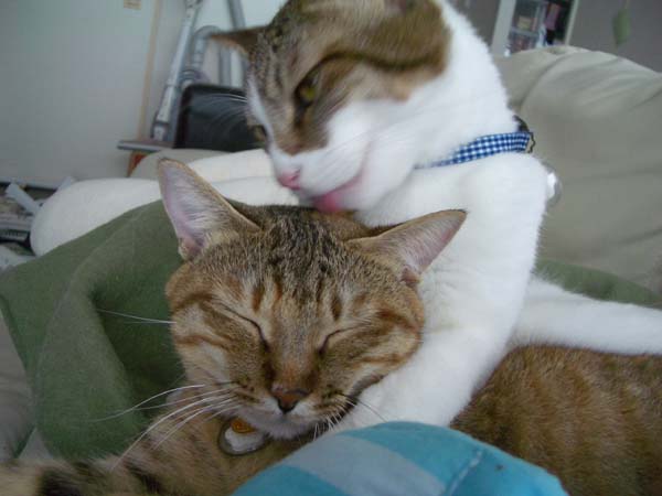 何はともあれ、ぴっち♀の頭を舐めるぽっけ♂。