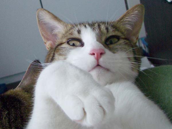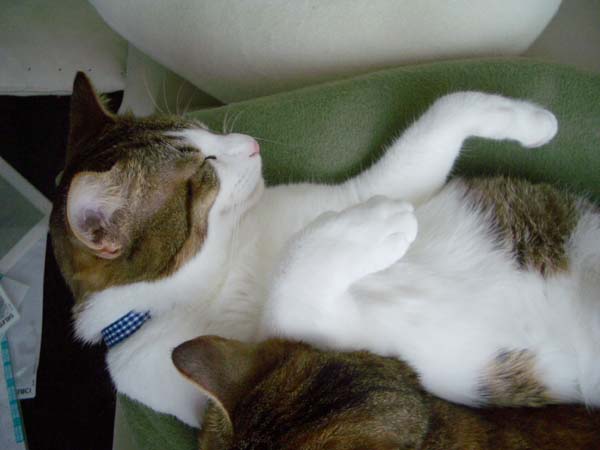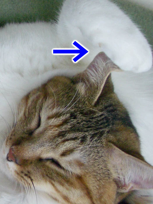 から胸枕へシフトしました。また、ぽっけ♂の前足
