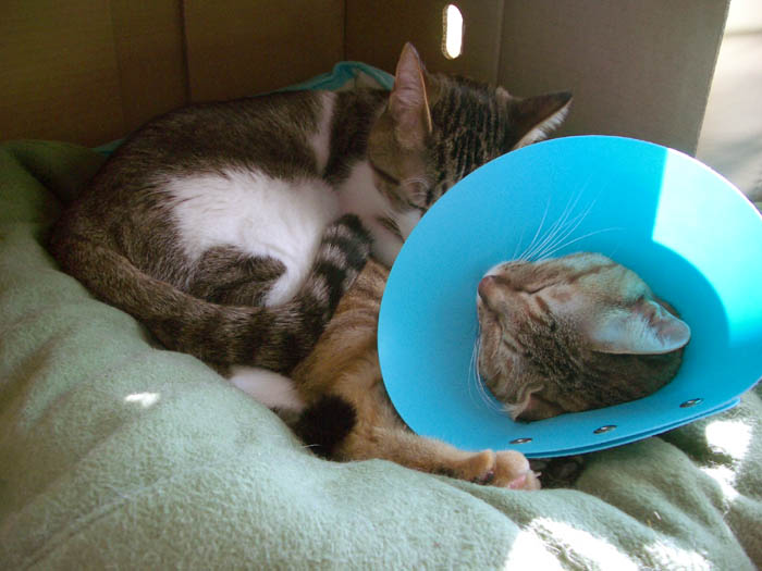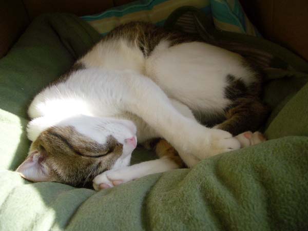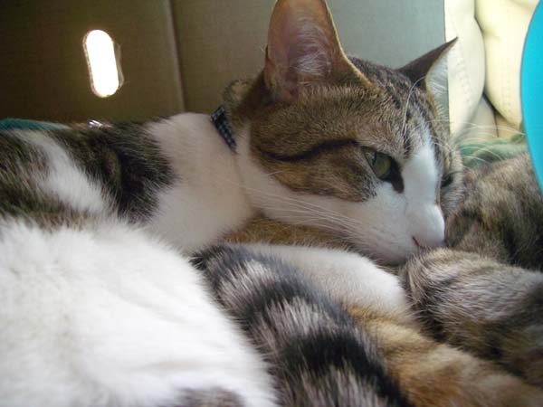 一方のぽっけ♂は、すぐ横の猫ベッドでお昼寝。