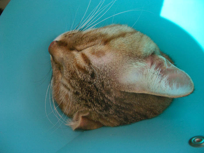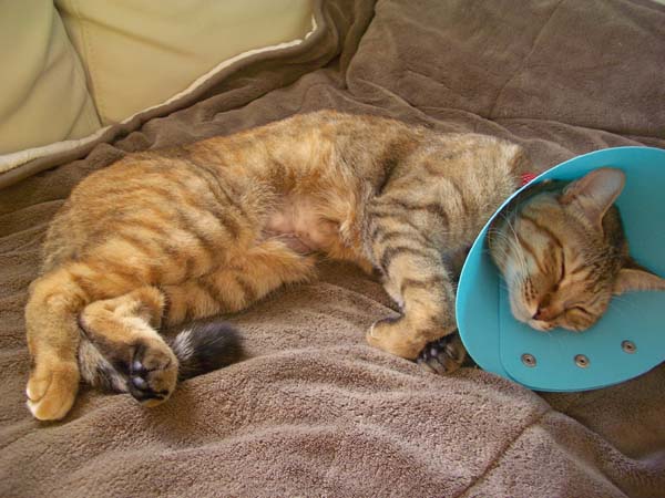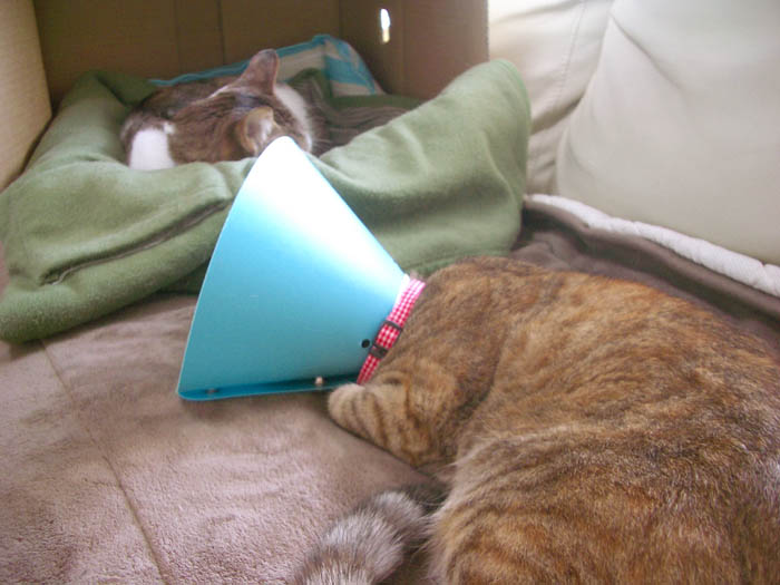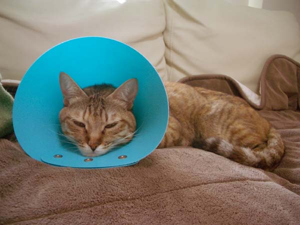 取ってしまうと、すぐに傷口を舐めてしまうので、