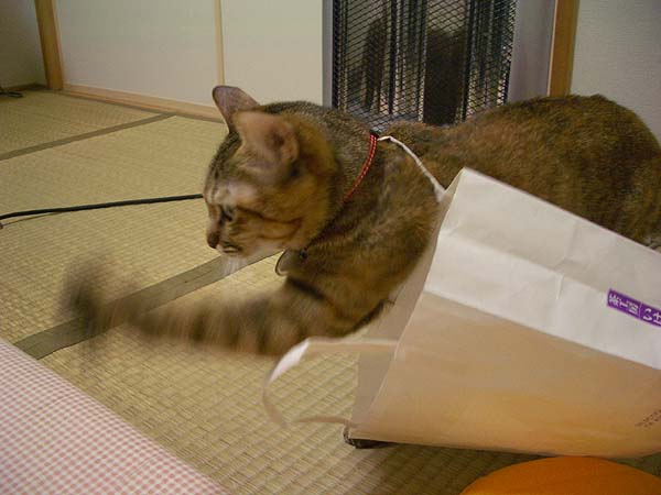 紙袋に突入して遊んでいるうちに、