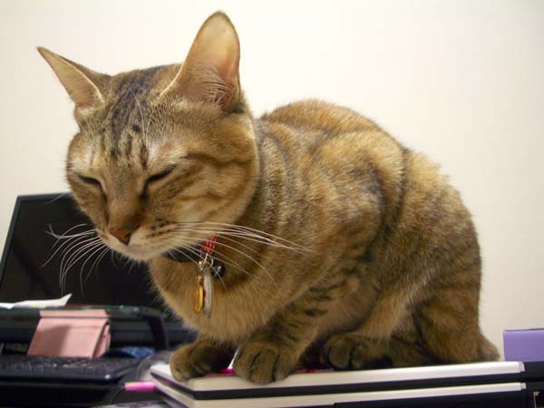 さっさとノートPCの上に避難しました。