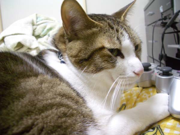 私の膝の上にやってきたぽっけ♂。