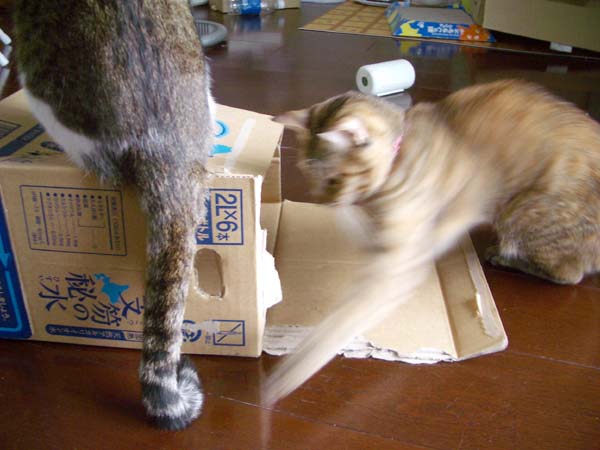 今度は、尻尾に猫パンチ