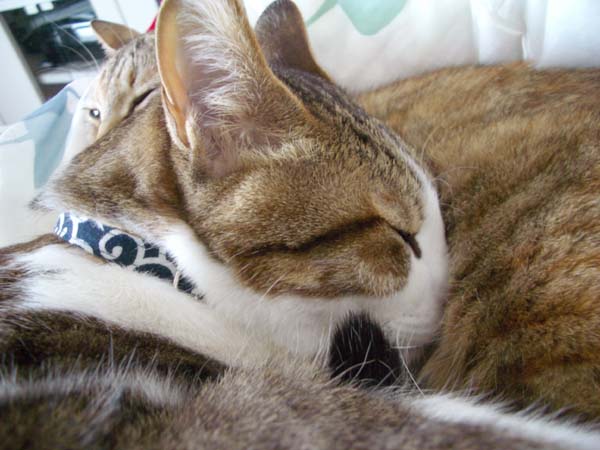 ぴっち♀のお腹に顔を埋めてグッスリ