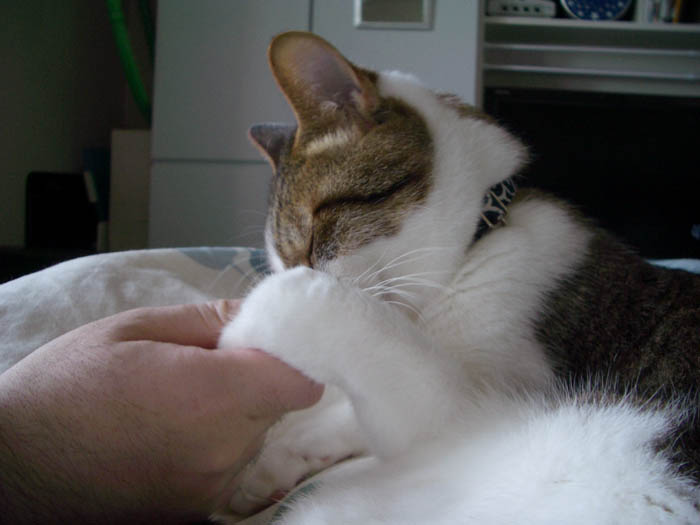 がぽっけ♂の前足を握ってしまいました。これは……握手……になるのでしょうか