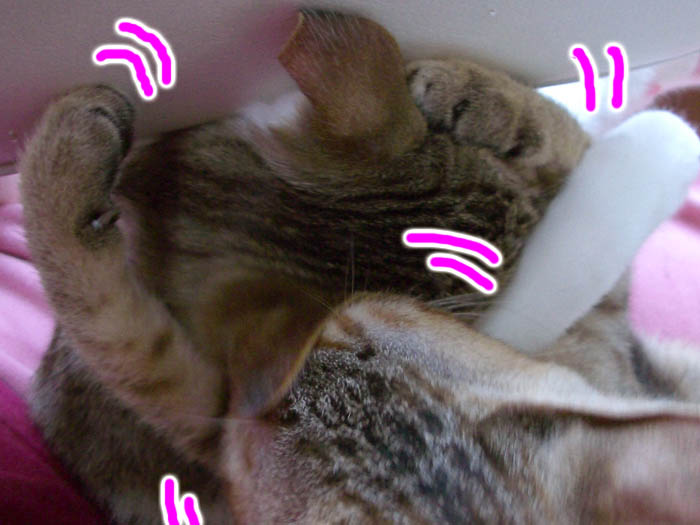 お昼寝を邪魔されてご不満のぽっけ♂が