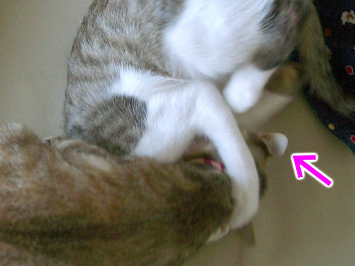 ぴっち♀の耳が後方向へと折りたたまれています。