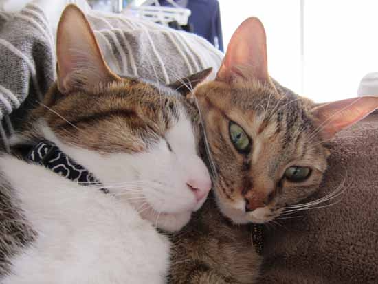 2009年 4/10(金) 237日目のぴっち♀とぽっけ♂ ~放っておいて~春の陽気にうつらうつらと眠~い2匹。猫の眠そうだったり嫌そうな表情を見るのも好きです。