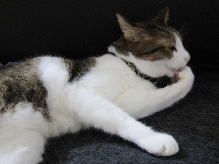 体を舐めつつ顔を洗っているように