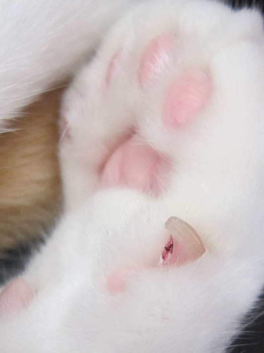 「ちょっと足を見せてね~。」血が出た痕を発見