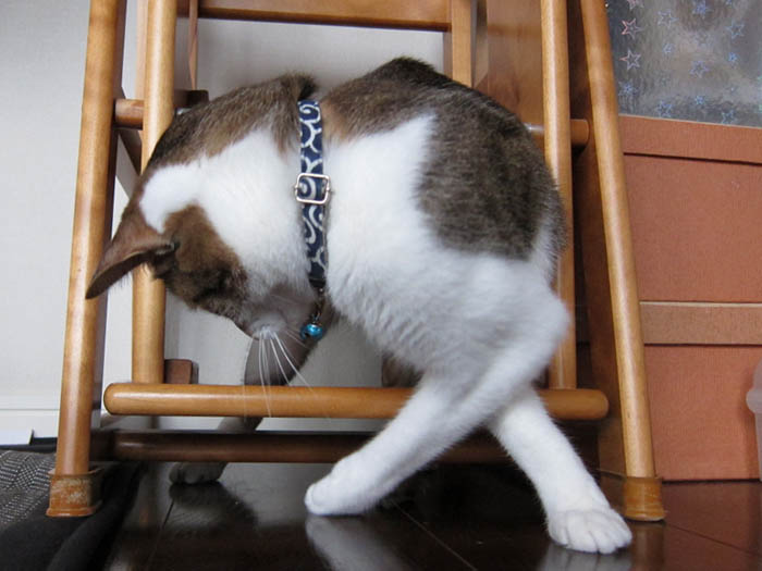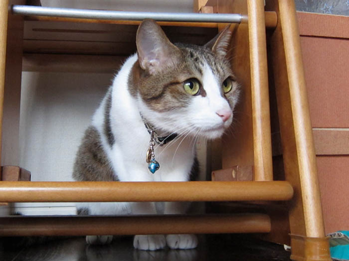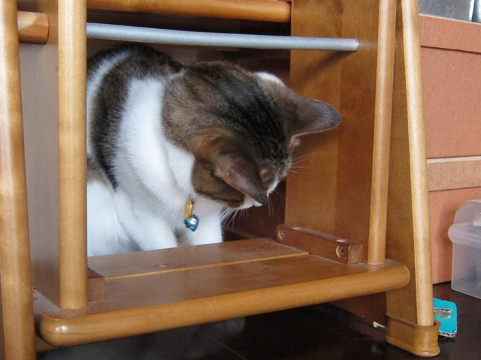 踏み台の下に入り込みました。