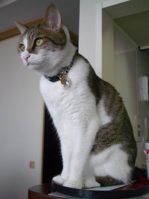↓の場所に立ち、棚の上を狙っていたぽっけ♂。