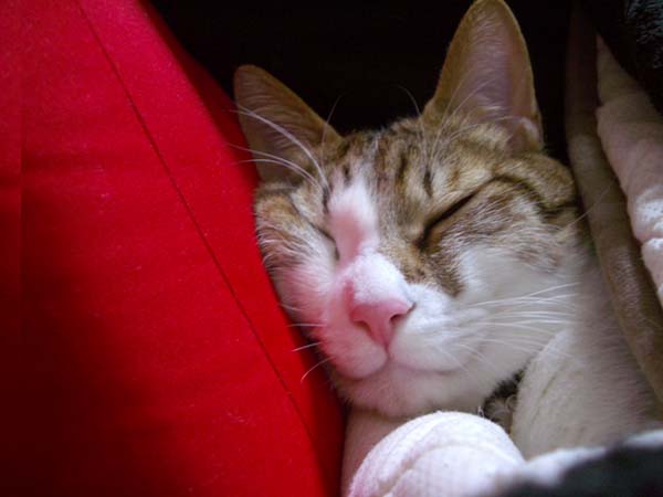 最初は部屋をウロウロしていましたが、しばらくすると布団の中に潜り込んで来ました。