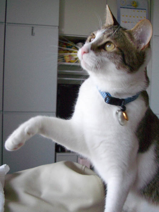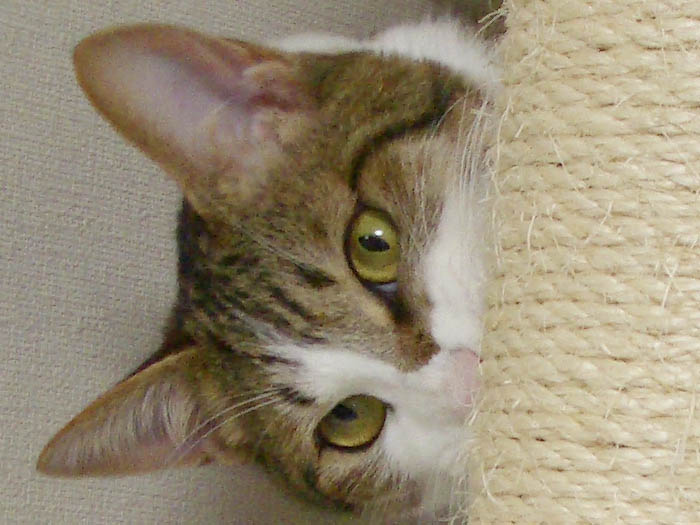 キャットタワー最上段で張り切り中のぽっけ♂。