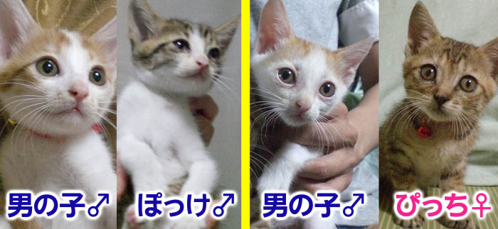 です。ぴっち♀は唯一の女の子で紅一点、ぽっけ♂を含む3匹は男の子です。