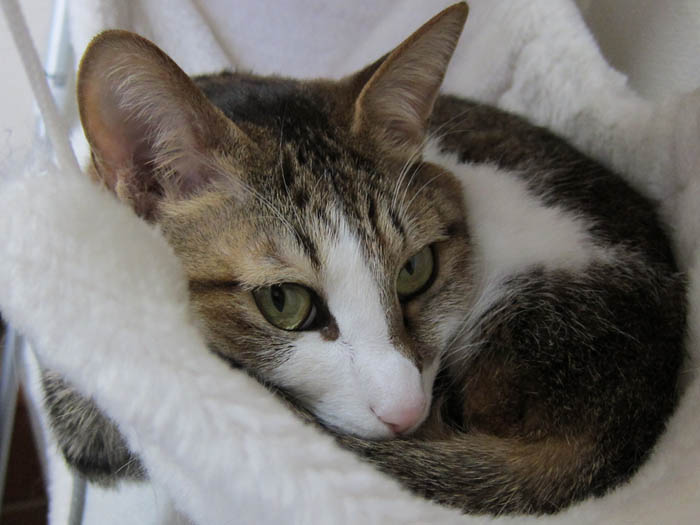 猫タワーのハンモックでは、
