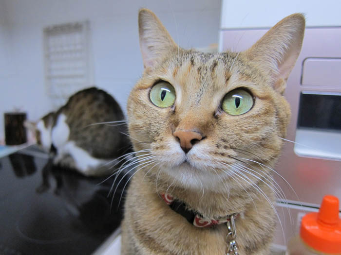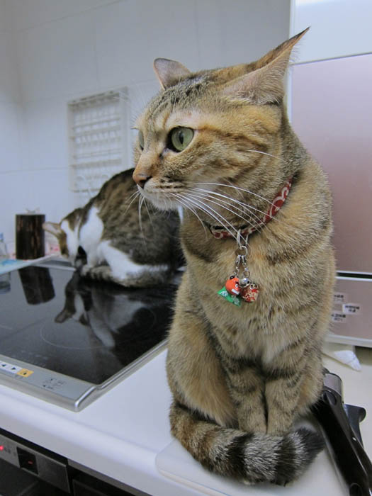 ぽっけ♂がすぐにコンロへとやって来て、