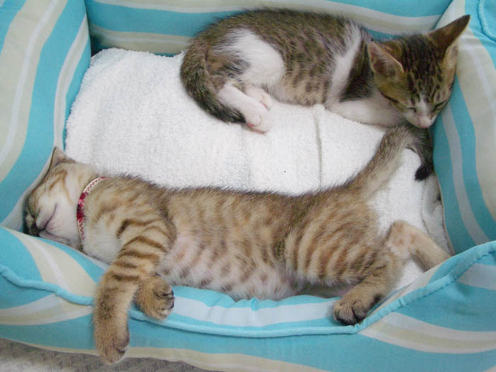 2008年 10/7(火) 52日目のぴっち♀とぽっけ♂ ~2匹巻き~ひざ掛けを使っての猫巻きがついに2匹盛りに