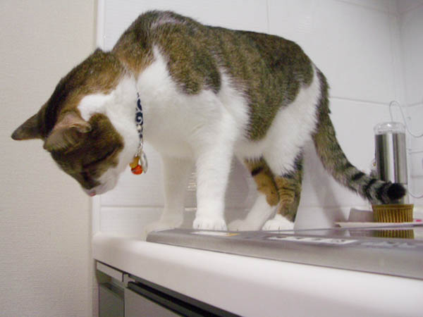でキッチンにやってきました。いつもながら、スゴイ嗅覚です。
