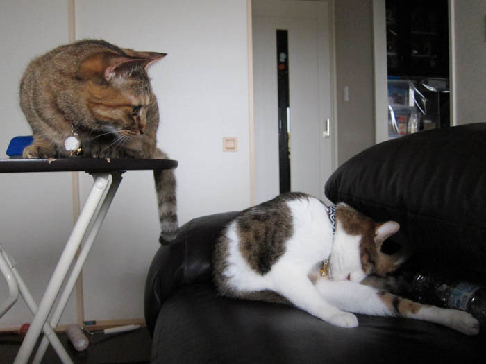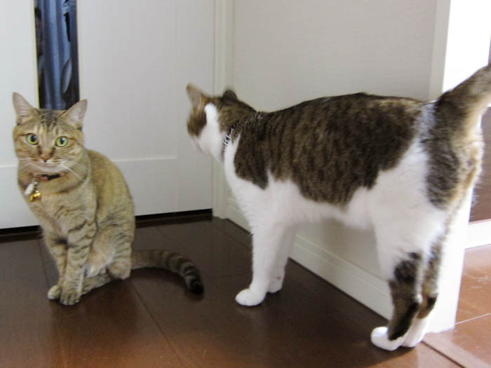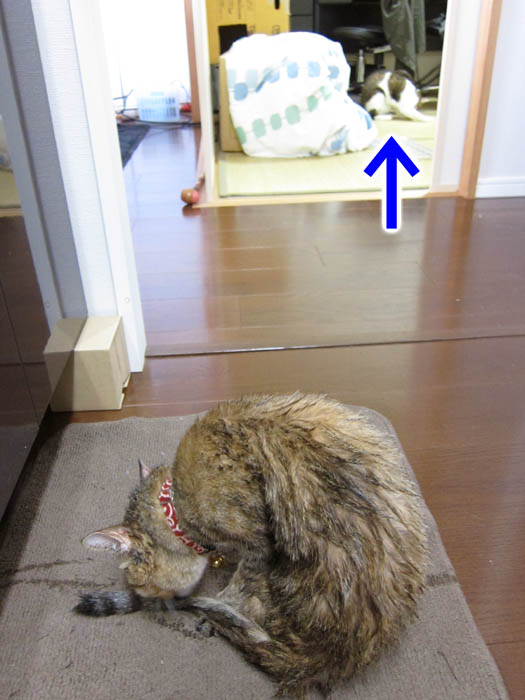 2009年 8/2(日) 351日目のぴっち♀とぽっけ♂ ~猫のドアストッパー~猫のドアストッパーとぽっけ♂。開かないドア。