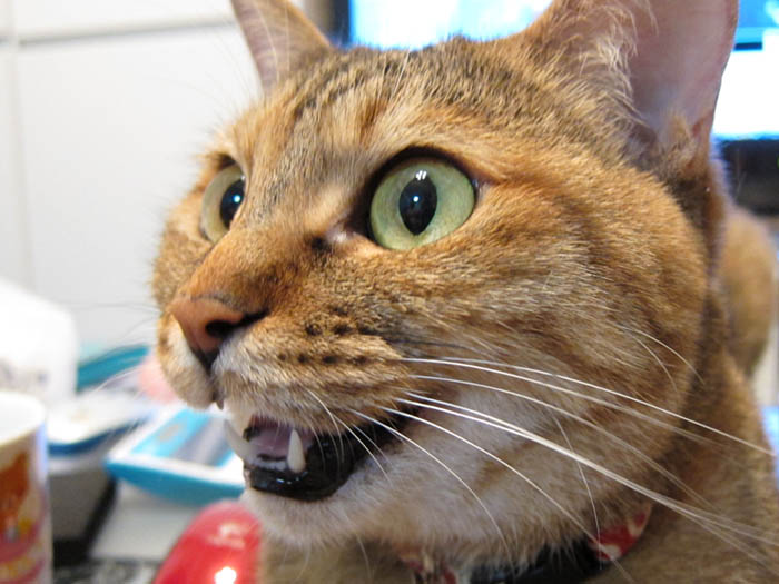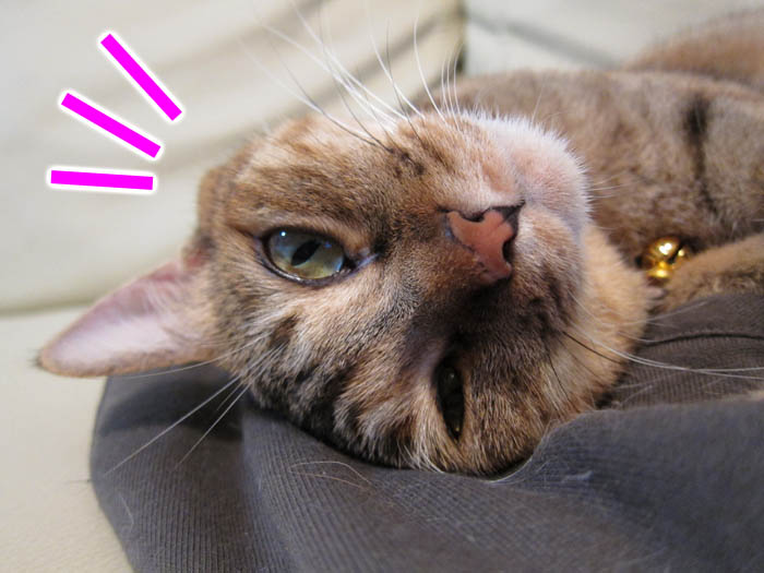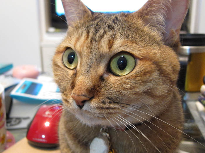 がダメならと、珍しく私へもアピールしています。夜寝る前のゴハンだけは、先にあげられません。